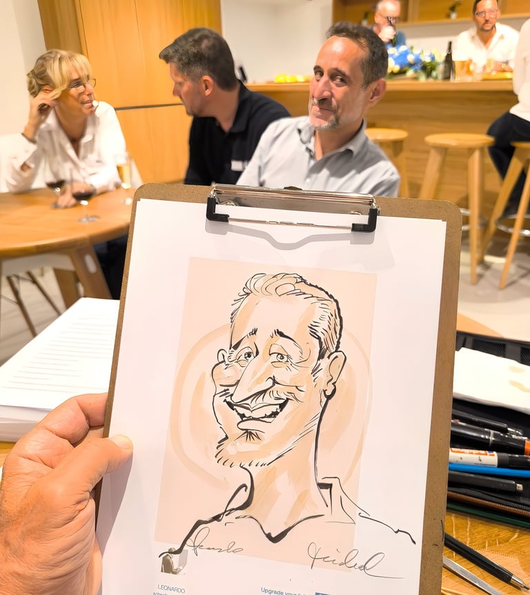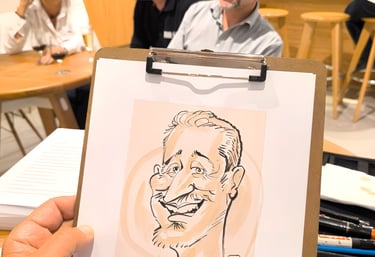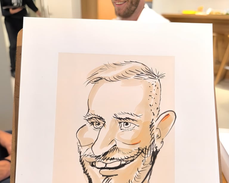 رسم بورتريه فريد يعكس شخصيات الضيوف باستخدام طرق مبتكرة ومميزة.